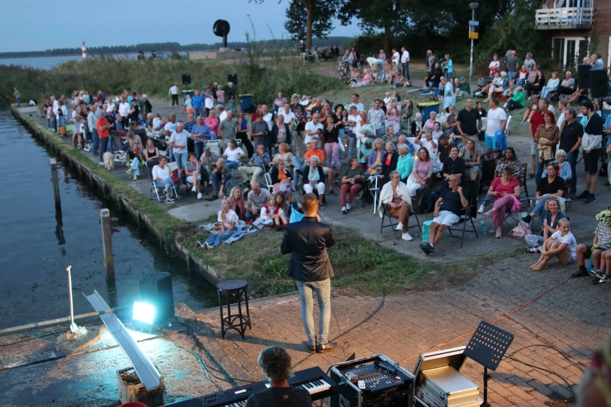 Na een periode van voorbereiding door onze brugwachters (Carmen, Monique en Nicolette) in samenwerking met de Theaterroute Huizen en geweldige muzikanten was het dan zover. Een mooie zomeravond, vrijdag 2 september 2022. Niet zomaar een avond, een bijzondere avond waar velen naartoe gekomen zijn.