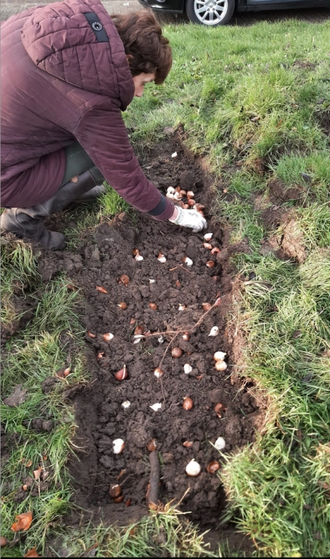 Ook denken we alweer aan het voorjaar. Met een aantal enthousiaste buurtbewoners hebben we 2500 tulpenbollen in de grond gezet. We kijken dan ook uit naar een vrolijk bloemenveld langs de Westkade en naast de ophaalbrug.