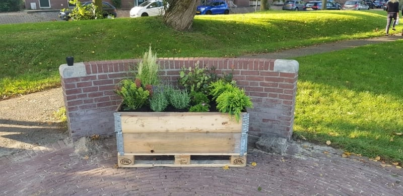 Met elkaar hebben we de handen uit de mouwen gestoken. Na veel ergernis over de verloedering van het rondje is er in de week van 27 september door de buurtbewoners onkruid weggehaald, zijn de muurtjes schoongespoten en is het oude bankje vervangen door een homemade nieuw exemplaar. Er zijn pallets besteld en bezoekjes gebracht aan het tuincentrum. Zie onder het resultaat: een gezellig plekje om met elkaar koffie te drinken!